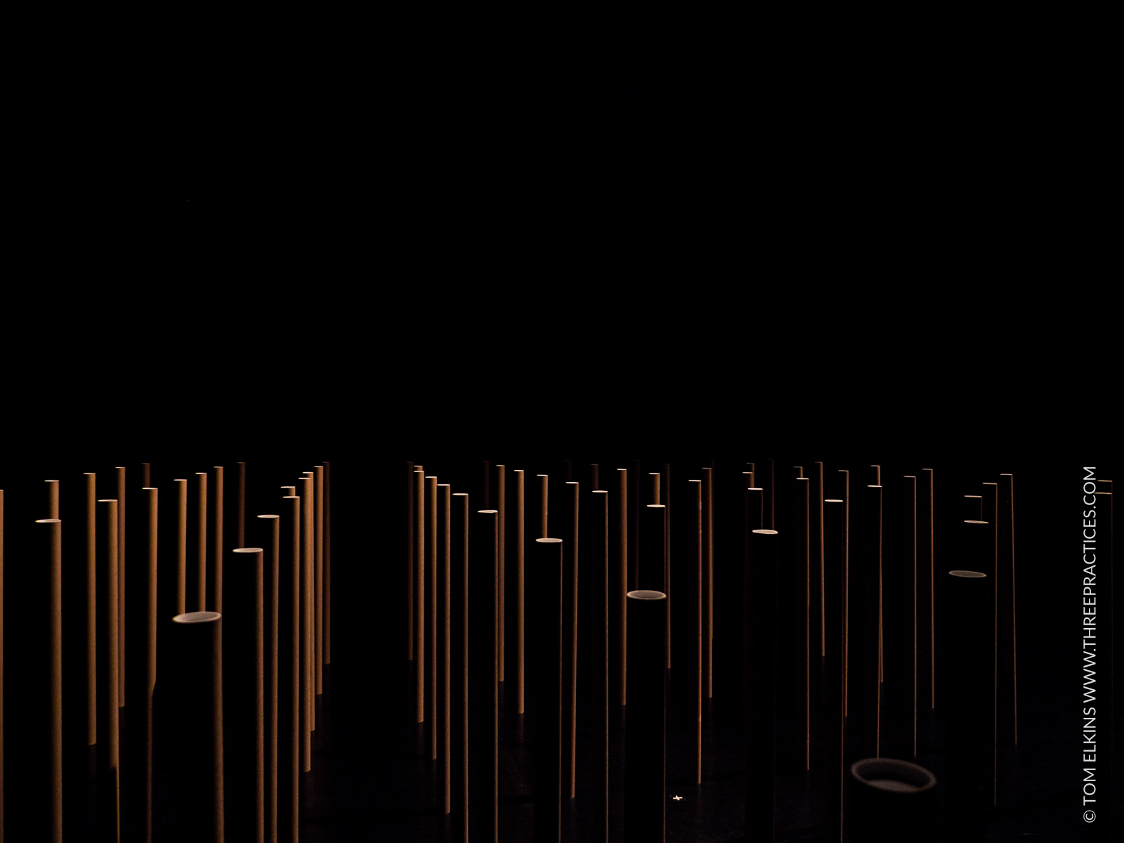 Orchard is described as: “A forest of vertically balanced poles, vulnerable to the lightest touch. Two performers navigate this precarious environment with the ever-present risk that one mistake could prove catastrophic. Orchard reveals the space between human and object as a charged territory of conflict. Within this territory the performers must either conform to their environment or make the choice to dominate it.”